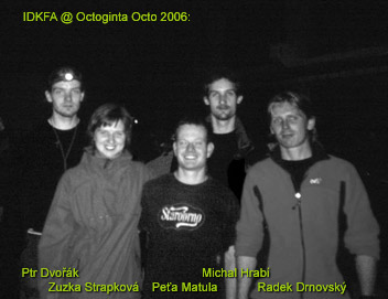 Většinu týmu IDKFA znáte už z loňska. Od té doby se toho u nás moc nezměnilo, snad jen Michal dokončil školu, Zuzka pilně pracuje na diplomce, Ptr se snaží pochopit proč je v letadle tolik trubiček a Peťa pořád bojuje za dobré pivko:-)